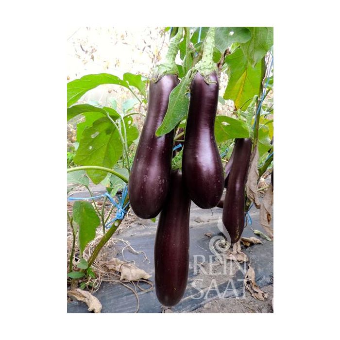 Middelvroege, zeer hoogproductieve aubergine met een sterke, stabiele, hoge plantstructuur. Vormt lange, knotsvormige, donkerpaarse vruchten met een groene kelk. Vruchtlengte 25 - 30 cm. Fijn, aromatisch vruchtvlees. Ideale aubergine voor klassieke mediterrane gerechten. Voor kasteelt en warme buitenlocaties.
