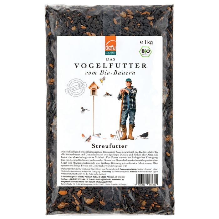 Geschikt voor wilde vogels en pluimvee. Te gebruiken het hele jaar door. Inhoud: 14 kg biologisch strooivoer.