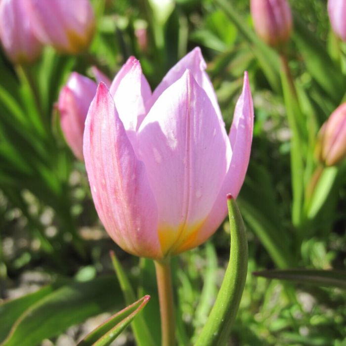 Deze bijzondere roze tulp bloeit rijkelijk met kleine lilaroze bloemen en een opvallend okergele hart. Dankzij haar natuurlijke neiging tot verwilderen verspreidt ze zich in de loop der jaren moeiteloos door je border of grasveld. Ideaal voor liefhebbers van een natuurlijke, onderhoudsarme tuin.