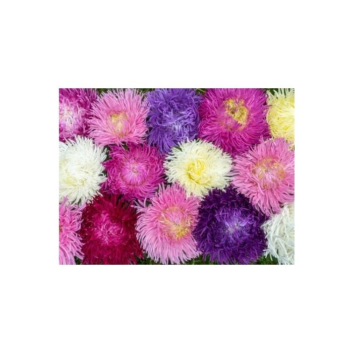 Deze kleurrijke asters imponeren met hun prachtige, dicht gevulde bloemen, die doen denken aan chrysanten. Ze verdragen goed de regen, bloeien rijkelijk op lange stelen, en