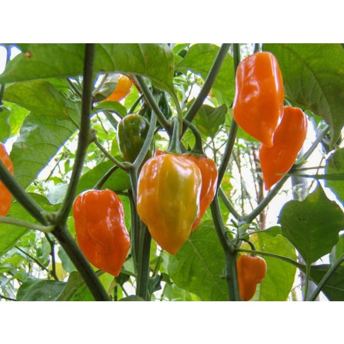 Zeer scherpe, fruitig-aromatische Habanero chilipeper. De lantaarn-vormige vruchten rijpen af van groengeel naar oranje. Bijzonder geschikt voor pikante sauzen, best vers te gebruiken, bij drogen verliezen ze aroma. Ontwikkelingstijd: ca. 100 dagen. Vroege en warme vooropkweek zijn zeer belangrijk! Scherptegraad: 9-10. Zeer scherp!