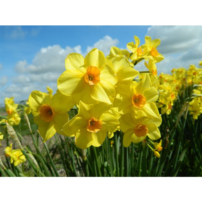 De geurige Narcis Martinette bloeit in april met trosjes stervormige, warmgele bloemen en een oranje trompet. Deze winterharde, ziekteresistente voorjaarsbloeier houdt van zon of halfschaduw en goed doorlatende grond. Perfect voor borders, potten en als snijbloem. Meerdere bloemen per steel zorgen voor een vrolijke lentetoets in elke tuin.
