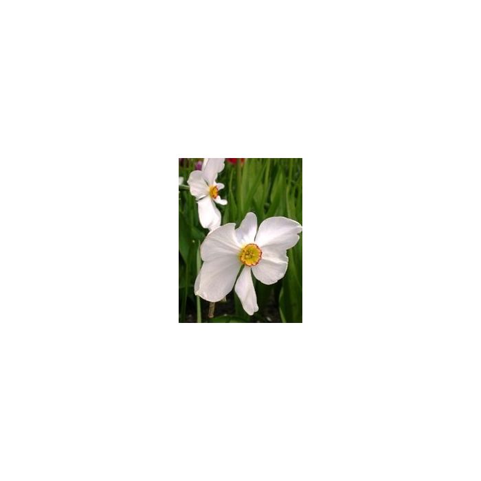 Deze mooie narcis bloeit als een van de laatste, namelijk pas eind april of mei. De narcis is klein-bloemig en wit van kleur met een geel/rood hart. Groeit het liefst in iets vochtigere grond. De bloemen ruiken ook nog eens heerlijk!