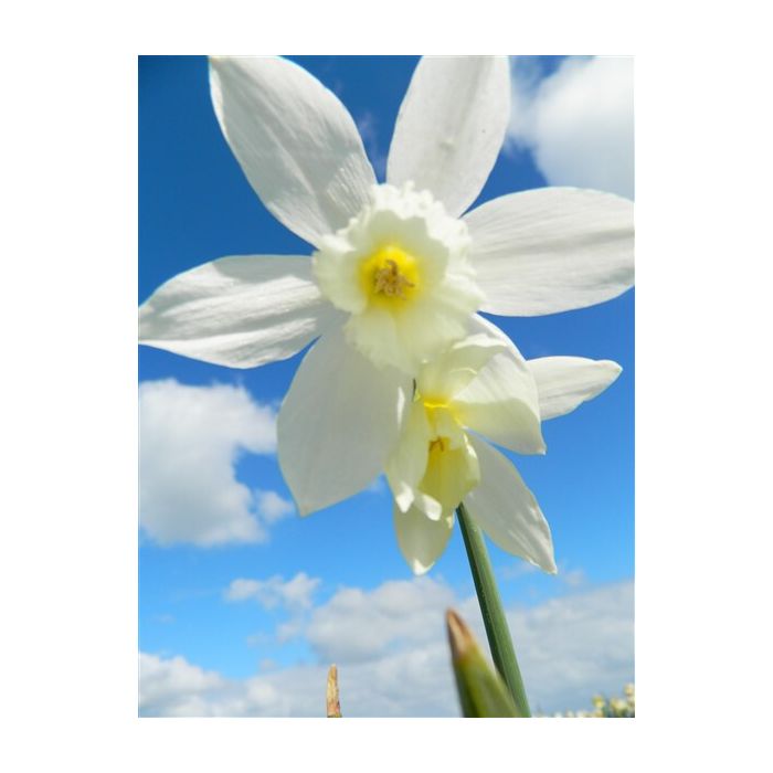 Meerdere witte bloemen per steel bloeien al vroeg in het voorjaar. Ze dansen vrolijk in de wind.