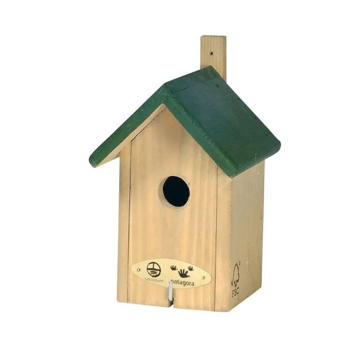 Deze kleine nestkast is speciaal ontwikkeld voor het winterkoninkje. Hiermee kunt u ze aanmoedigen om biji u in de tuin een nest te bouwen. Natuurlijk kar er ook een andere soort zoals de grauwe vliegenvanger, witte kwikstaart of roodborst zijn intrek nemen.