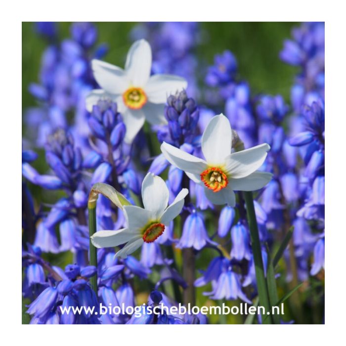 Een prachtige mix van 10 Narcissus Poeticus Recurvus en 10 Boshyacinten Excelsior.