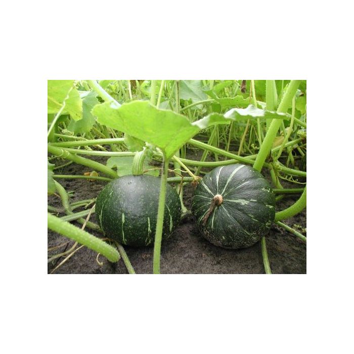 Goede bewaarpompoen met een diameter van ongeveer 25 cm. Rankend soort. Zorgen voor goede bemesting.