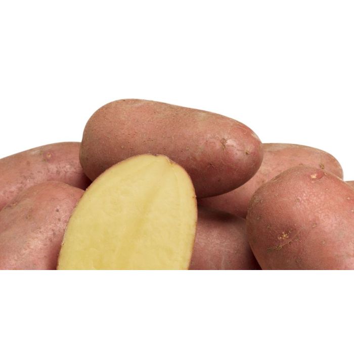 Raseigenschappen: middenlaat, oogst augustus, langovale knolvorm, rode schil, geel vruchtvlees, vrij vastkokend.