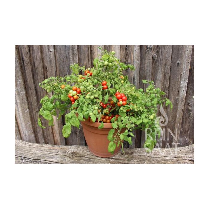 Krachtige, robuuste en vroegrijpe hangmand- of balkontomaat met compacte groei tot 50 cm hoog. Eén plant produceert massa's kleine, rode, ronde kerstomaatjes met een pittige, aromatische smaak. Ideaal om te snoepen. Geen dieven nodig.