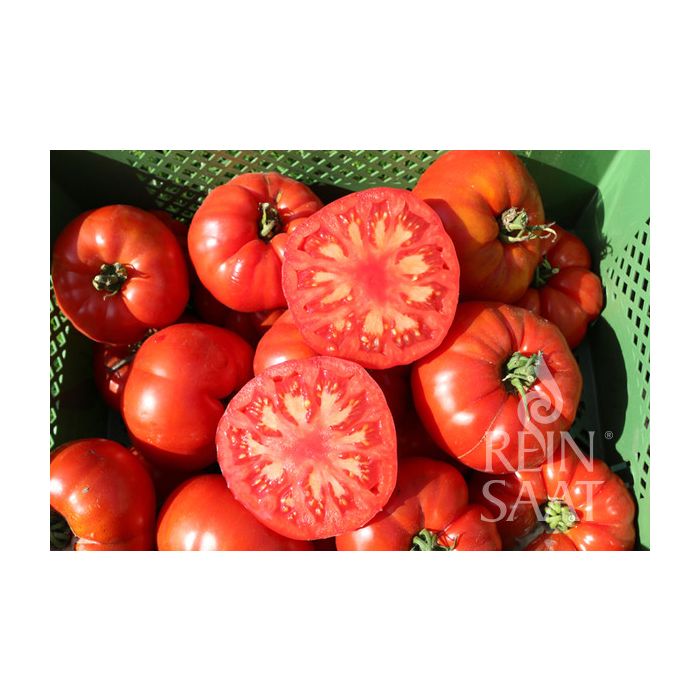 Spaanse tomaat voor buitenteelt. RAF staat voor 'Resiste A Fusarium', dus de naam van deze veldtomaat verwijst naar zijn resistentie tegen Fusarium's Phytophthora (radicale type). De grote vruchten zijn mooi dieprood, afgeplat, met een licht geribbelde hals. Perfect evenwicht tussen suiker en zuurgraad en uitstekende fruitige smaak. Gewicht: 200 tot 220 g.