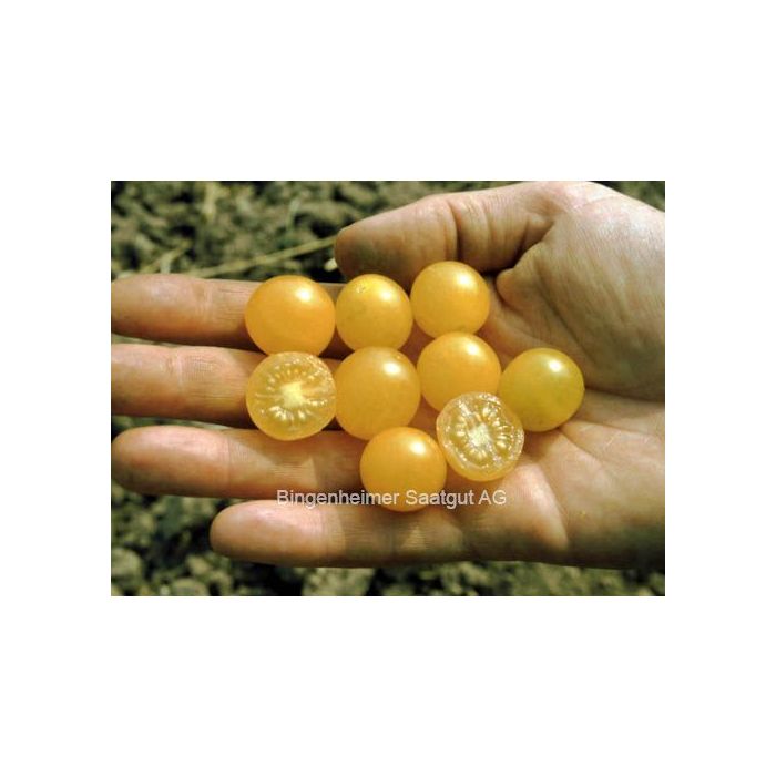 Goudgele tomaat met kersgrote, zoete en aromatische vruchten. Robuust buitenras. Vroeg en hoogproductief; ook voor grote potten op balkon en terras. Specialiteit voor de hobbysector.