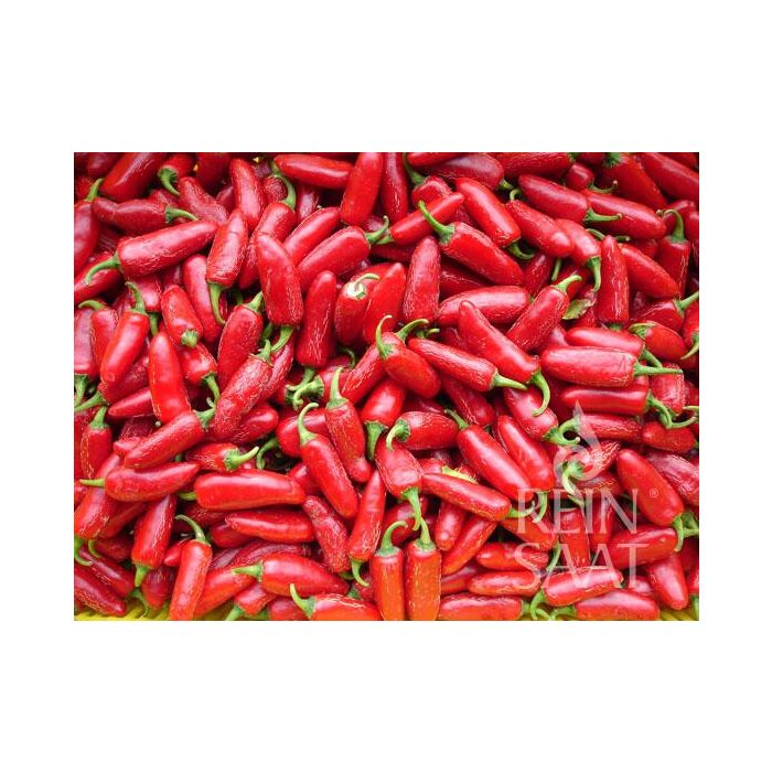 Veredeling Reinsaat. Zeer productieve, dikvlezige jalapeño met ongeveer 7 cm lange vruchten die rijpen van donkergroen naar rood. De langwerpige verkokingen die bij volledige rijpheid optreden, worden beschouwd als een kwaliteitskenmerk. Fruitige, aangename scherpte van 3 - 5. Geschikt voor verse consumptie (groene en rode vruchten) en om in te maken.