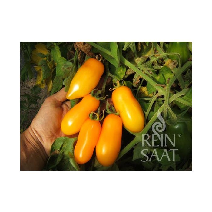 Populaire, productieve struiktomaat uit de EHZ van ReinSaat. Grote, langwerpige gele tomaten met dik vruchtvlees en weinig sap. Milde, aangename smaak. Vruchtgewicht ca. 60 – 80 g.