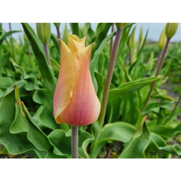 In gesloten toestand hebben deze tulpen een verstillend effect. In de zon, met hun bloemblaadjes ontvouwd, zien ze eruit als een vlucht exotische vogels. Grote maar zeer elegante tulp met roomgele lelievormige bloembladeren met een zachtroze blos aan de buitenkant. Delicaat ogend, maar met haar lange stevige stelen bestand tegen wind en regen.