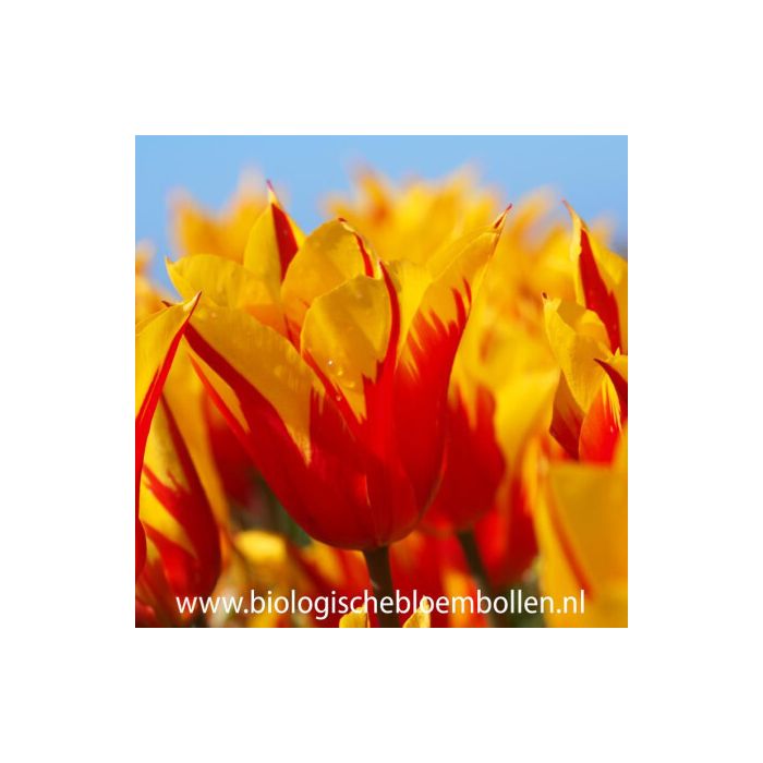 De Tulp Fire Wings is een vurige leliebloemige tulp met rode bloemblaadjes en gouden punten. Sterk, biologisch geteeld en ideaal voor tuin én vaas.