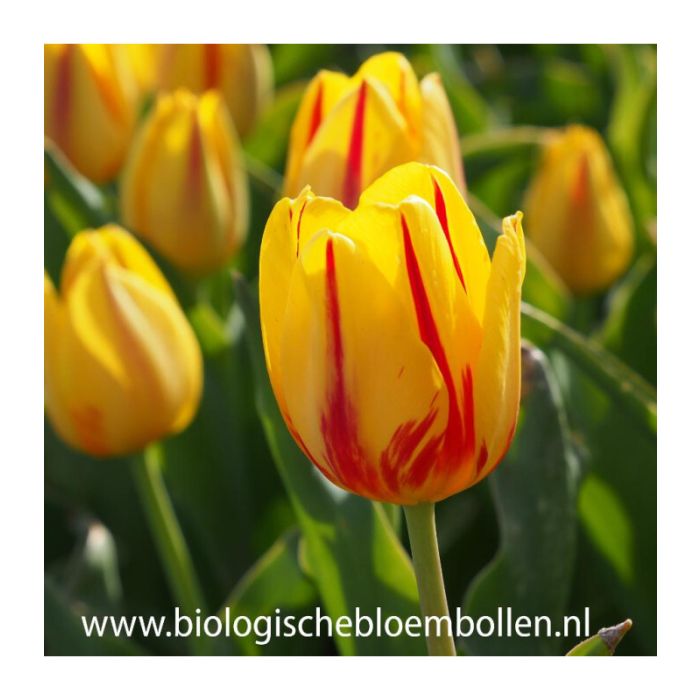 Een tulp met een missie. Ze heeft haar officiële naam gekregen tijdens een doopritueel, waarbij de tulp is gedoopt door een Britse Tweede Wereldoorlog veteraan. Haar doel is bewustwording te creëren rondom het thema “Leven in Vrijheid”. Daarnaast is het gewoon een prachtige tulp met een zonnige vrolijke uitstraling. Deze Triumph tulp met haar kanariegele bloembladeren met ingetogen rood gevlamde strepen komt het best tot haar recht in een groep bij elkaar. Dan heeft u er ook meteen genoeg om af en toe een bosje voor in de vaas te plukken.