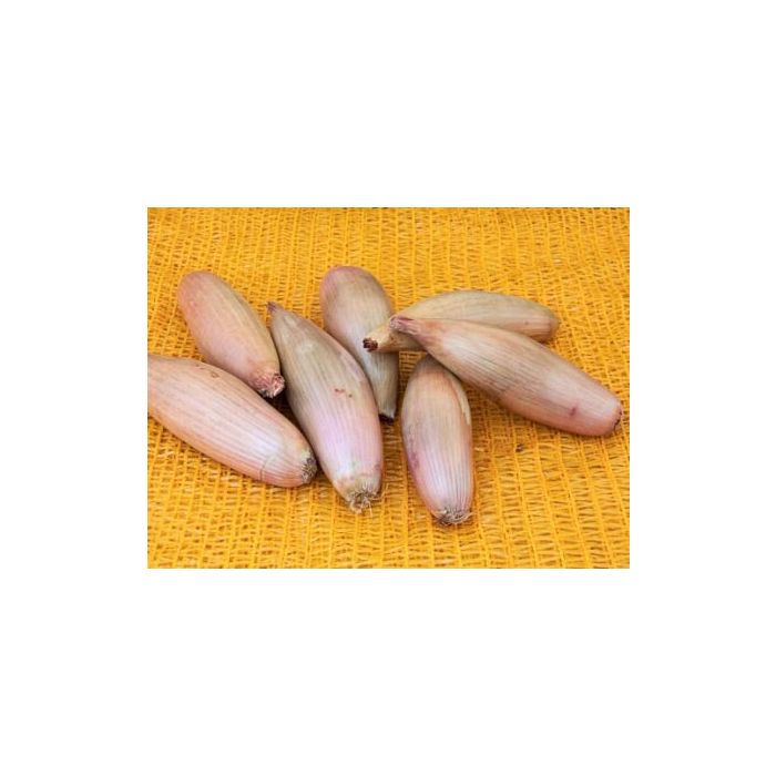 Oud Frans uienras. Langwerpige, sjalotvormige uien, heel aromatisch.