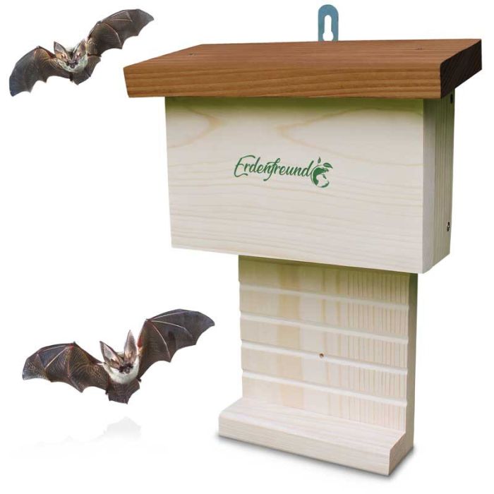 Met je nieuwe vleermuiskast lever je een voorbeeldige bijdrage aan dierenwelzijn en het behoud van inheemse dieren. Vleermuizen worden al met uitsterven bedreigd en de insectenpopulatie, hun voedselbron, neemt al jaren af! Als je een gewonde, vliegloze of verwarde, bijna bevroren vleermuis vindt, neem dan contact op met een regionaal hulpcentrum voor vleermuizen/dieren! Vooral in de winter vliegen de dieren rond tot ze uitgeput zijn totdat ze een schuilplaats voor hun winterslaap vinden! Dieren moeten ook elke dag voldoende drinken! Het beste is om de vleermuizen altijd een drinkgelegenheid binnen handbereik aan te bieden. Bij hoge temperaturen in de zomer kunnen de dieren snel sterven aan een zonnesteek! Een drinkplaats redt veel dierenlevens, vooral in het warme seizoen!