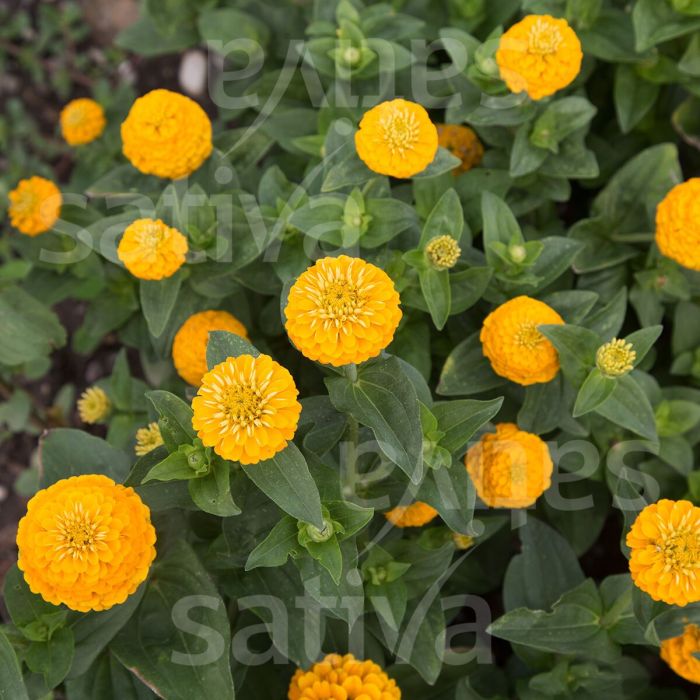 Kleinbloemige zinnia van ongeveer 60 cm hoog in helder geel, met dubbele bloemhoofdjes. Rijkbloeiend, goede houdbaarheid.